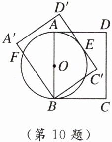 10. [2025无锡锡山区期中]如图,在矩形ABCD中,$BC= 8$,以AB为直径作$\odot O$,将矩形ABCD绕点B旋转,使所得矩形$A'BC'D'的边C'D'与\odot O$相切,切点为E,边$A'B与\odot O$相交于点F.若$BF= 8$,则AB的长为 (