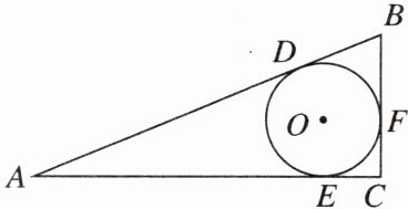 8. [教材$P_{100}$例 2 变式]如图,在$\triangle ABC$中,$∠C= 90^{\circ}$,$BC= 5$,$\odot O与\triangle ABC的三边分别相切于点D$,$E$,$F$,若$\odot O的半径为2$,求$\triangle ABC$的周长。