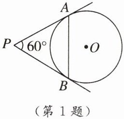 1. 如图,从$\odot O外一点P引\odot O的两条切线PA$,$PB$,切点分别为$A$,$B$,如果$∠APB= 60^{\circ}$,$PA= 8$,那么弦$AB$的长是(