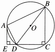 4. [2025廊坊期末]如图,以四边形$ABCD的对角线BD$为直径作圆,圆心为点$O$,$\angle BCD = 90^{\circ}$,过点$A作AE \perp CD$,交$CD的延长线于点E$,已知$DA平分\angle BDE$。