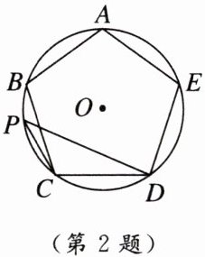 2. 如图,正五边形ABCDE内接于$\odot O$,点P是$\overset{\frown }{BC}$上一点(点P不与点C重合),则$∠CPD$的度数为(