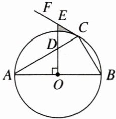 14. 如图,AB是$\odot O$的直径,C为$\odot O$上一点,CF为$\odot O$的切线,$OE\perp AB$于点O,分别交AC,CF于D,E两点.