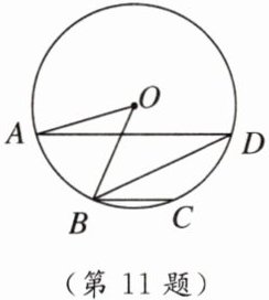 11. [2024青岛中考]如图,A,B,C,D是$\odot O$上的点,半径$OA= 3$,$\overset{\frown}{AB}= \overset{\frown}{CD}$,$\angle DBC= 25^{\circ}$,连接AD,则扇形AOB的面积为 (
