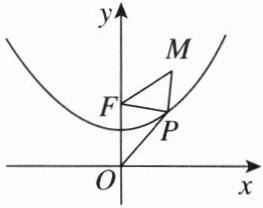 18. 核心素养 创新意识 已知抛物线$y= \frac{1}{4}x^{2}+1$具有如下性质:抛物线上任意一点到定点$F(0,2)$的距离与到x轴的距离相等.如图,点M的坐标为$(\sqrt{3},3)$,P是抛物线$y= \frac{1}{4}x^{2}+1$上一动点.
