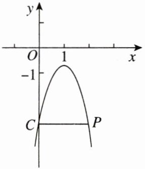 因为抛物线在点$C$,$P$之间的部分与线段$CP$所围成的区域内(含边界)恰有$5$个整点,这些整点为$(0,-3)$,$(1,-3)$,$(2,-3)$,$(1,-2)$,$(1,-1)$。