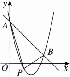 14. [2024徐州中考]如图,$A$,$B为一次函数y= -x + 5的图象与二次函数y= x^{2}+bx + c$的图象的公共点,点$A$,$B的横坐标分别为0$,$4$.$P为二次函数y= x^{2}+bx + c$的图象上的动点,且位于直线$AB$的下方,连接$PA$,$PB$.