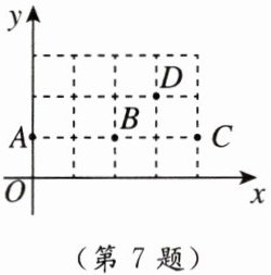 7. [2025绍兴柯桥区月考]如图,在“探索二次函数 $ y = ax^2 + bx + c(a \neq 0) $ 中的常数 $ a $,$ b $,$ c $ 与图象的关系”活动中,老师给出了坐标系中的四个点:$ A(0, 1) $,$ B(2, 1) $,$ C(4, 1) $,$ D(3, 2) $。同学们分别画出了经过这四个点中的三个点的二次函数图象,并得到对应的函数解析式 $ y = ax^2 + bx + c $,则 $ a + b + c $ 的最大值为(