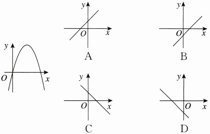 9. [2025大连西岗区月考]已知二次函数$y= ax^{2}+bx(a≠0)$的图象如图所示,则一次函数$y= ax+b(a≠0)$的图象大致为(