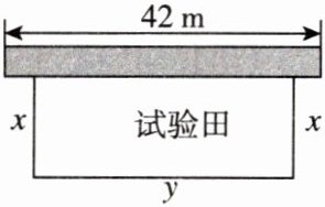 12. [2024湖北中考]如图,某校劳动实践基地用总长为80m的栅栏,围成一块一边靠墙的矩形试验田,墙长为42m.栅栏在安装过程中不重叠、无损耗,设矩形试验田与墙垂直的一边长为x(单位:m),与墙平行的一边长为y(单位:m),面积为S(单位:$ m^{2} $).