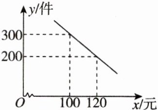 (1)设这段时间内y与x之间的函数解析式为$y=kx+b$,由图象可知,函数图象经过点$(100,300),(120,200)$,