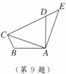 9. [2024广元中考]如图,将△ABC绕点A顺时针旋转90°得到△ADE,点B,C的对应点分别为点D,E,连接CE,点D恰好落在线段CE上,若CD= 3,BC= 1,则AD的长为 (