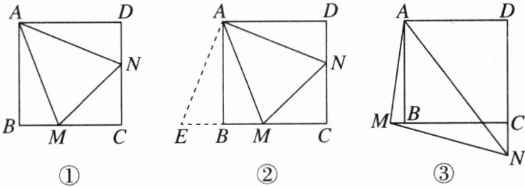 4. [2025泉州期末]如图①,点$M$,$N分别在正方形ABCD的边BC$,$CD$上,$\angle MAN = 45^{\circ}$,连接$MN$.