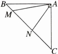 3. 如图,在等腰直角三角形$ABC$中,$\angle BAC = 90^{\circ}$,$AB = AC$,点$M$,$N在边BC$上,且$\angle MAN = 45^{\circ}$,$BM = 1$,$CN = 3$,求$MN$的长.