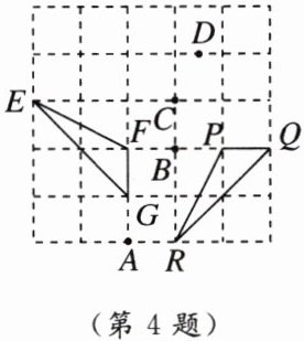 4. 如图,在正方形网格中,$△EFG绕某一点旋转某一角度得到△RPQ$,则旋转中心是(