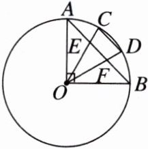 14. 如图,在⊙O中,$\angle AOB = 90^{\circ}$,且C,D是$\overset{\frown}{AB}$的三等分点,AB分别交OC,OD于点E,F.求证:$AE = BF = CD$.