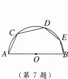 7. 如图,AB是半圆O的直径,C,D,E三点依次在半圆O上.若∠C= α,∠E= β,则α与β之间的关系式为______