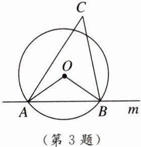 3. 如图,已知点$O$,$C在直线m$的同一侧,作$\odot O交m于点A$,$B$,连接$AC$,$BC$,$OA$,$OB$,若点$C在\odot O$外,$\angle AOB = 110^{\circ}$,则$\angle C$的度数可能是(