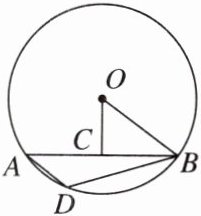 17. 如图,在$\odot O$中,点$C为弦AB$的中点,连接$OC$,$OB$,点$D是\overset{\frown}{AB}$上任意一点,若$\angle ADB = 126^{\circ}$,求$\angle COB$的度数.