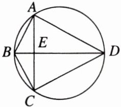 13. (8分)如图,圆内接四边形ABCD的对角线AC,BD交于点E,BD平分$∠ABC,$$∠BAC= ∠ADB$.求证:BD为圆的直径.