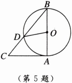 5. [2024山西中考]如图,已知$\triangle ABC$,以AB为直径的$\odot O$交BC于点D,与AC相切于点A,连接OD.若$\angle AOD= 80^{\circ}$,则$\angle C$的度数为 (