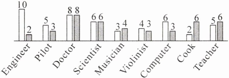 Today our English teacher Mr Chen asked his ninety students in Class 4 and 7 about what they're going to be when they grow up. Let's have a look at the results in the chart.