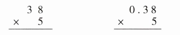 [点拨]小数乘整数的竖式计算,先按整数乘法算出积,再看两个因数共有几位小数,就从积的右边起,数出几位,点上小数点。积的小数部分末尾有0,要去掉0。