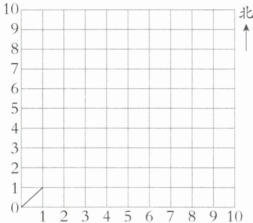 如果一个小正方形的对角线长10 km,那么你所在的位置点(0,0)东偏北45°方向40 km处是乘车点A(