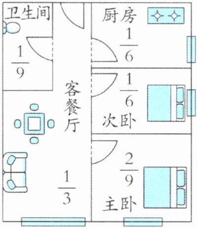 135×$\frac{1}{3}$=45(m²) 答:客餐厅的面积是45 m²。