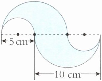 3.14×10+3.14×5=47.1(cm)【点拨】观察题图可知,涂色部分的周长等于一个直径为10 cm的圆的周长加上一个直径为5 cm的圆的周长,据此列式计算即可。
