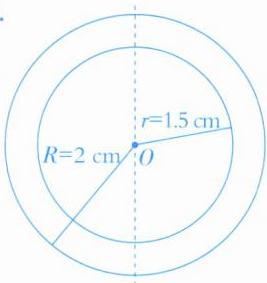 以点O为圆心,分别画出半径是1.5 cm和半径是2 cm的圆,并画出一条对称轴。