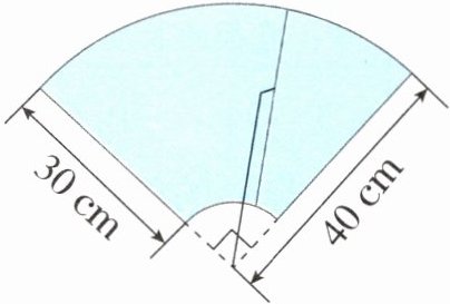[点拨]由题意可知,这个雨刷刮出的区域的面积是半径为40cm的$\frac{1}{4}$圆的面积减去半径为(40−30)cm的$\frac{1}{4}$圆的面积。