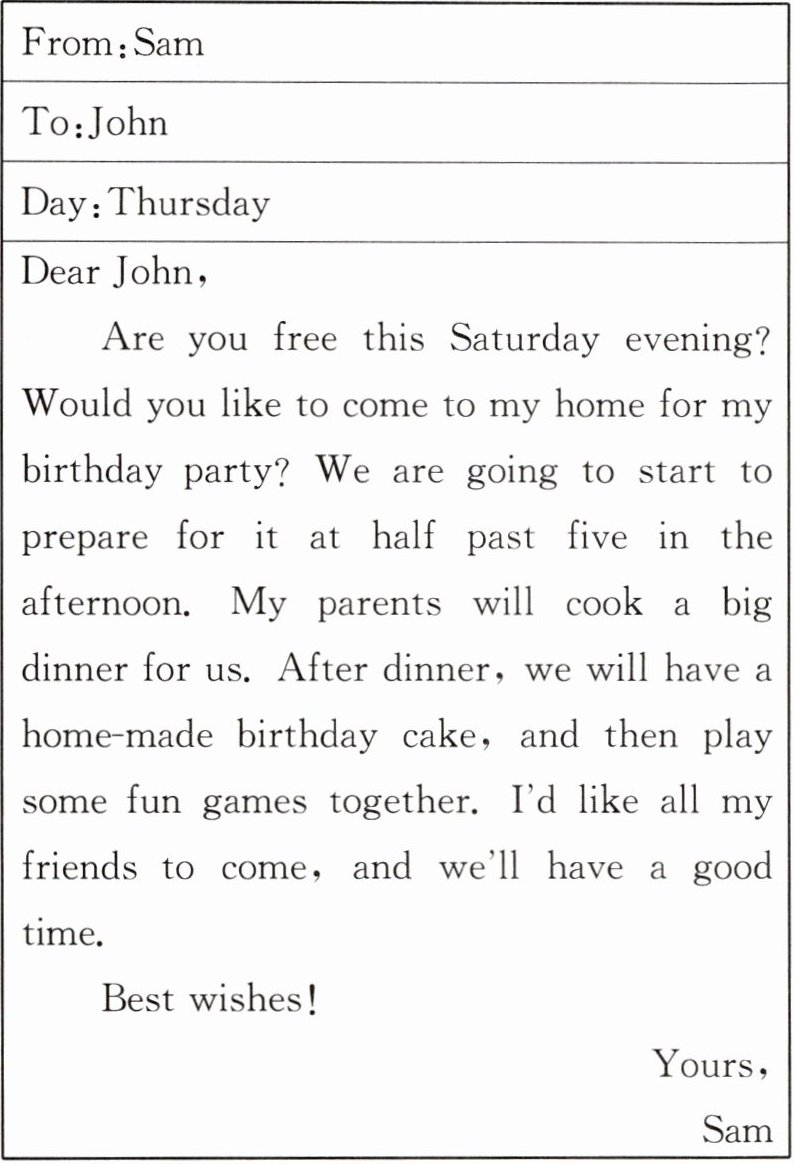 )1. Sam wrote the invitation to John ____.A. on Thursday B. on Friday