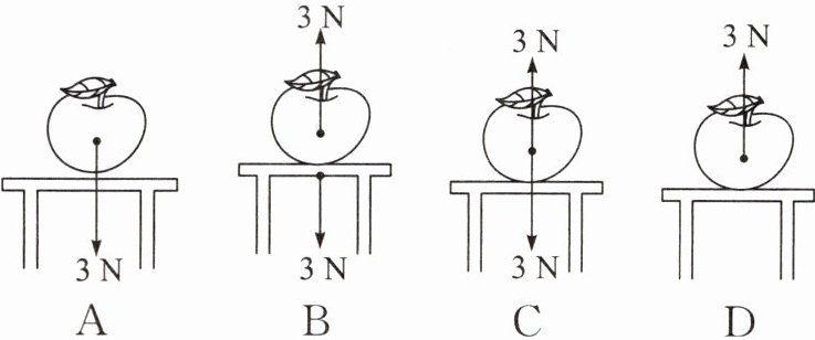 5. 重为 3N 的苹果静止在水平桌面上,下面能正确表示苹果受力的示意图是(