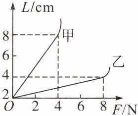 B.乙弹簧受到 8N 拉力时,弹簧伸长了 4cm