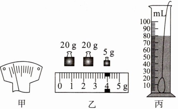 (2)在已调节好的天平左盘上放置一个笔袋,天平再次平衡后,右盘中所放砝码和游码在标尺上的位置如图乙所示,则笔袋的质量为