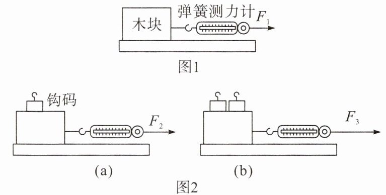 (选填“大于”“小于”或“等于”)木块受到的滑动摩擦力大小。(3)如图1,用弹簧测力计沿水平方向拉动木块,使其做速度大小不同的匀速直线运动。发现弹簧测力计的示数不变,说明滑动摩擦力的大小与物体运动速度的大小