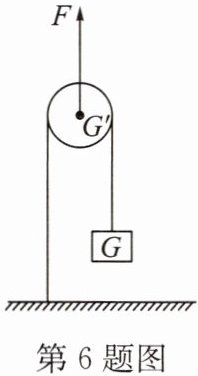 6. 如图所示,物体重$G= 200N$,滑轮重$G'= 20N$,要使物体匀速上升1m,不计绳重和摩擦,则 (