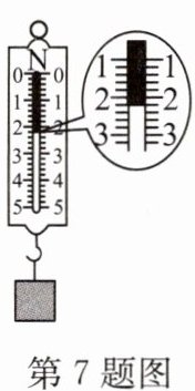 7. 如图所示,弹簧测力计的分度值为______N,所测物体的重力为______N。