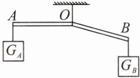 5. 如图所示,轻质杠杆AOB的支点是O,$AO= BO$。若在A和B端分别悬挂两个重物后,杠杆恰好在图示位置平衡,则 (