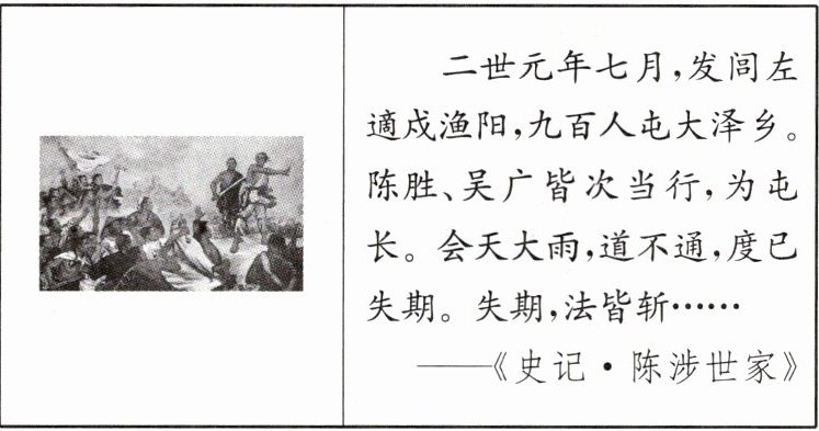 (1)阅读材料一,有人认为如果前往渔阳戍守的农民没有在途中遇上大雨,秦末农民大起义就不会爆发。你赞同这一观点吗?请说明理由。(3分)