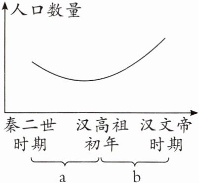 2.(山东冠县期中)人口数量是一个国家最基本、最重要的国情。下图反映的是秦末至西汉文帝时期的人口数量变化情况。a阶段人口数量下滑和b阶段人口数量迅速提升,给我们的最大启示是()