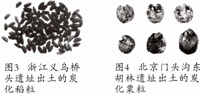 (2)图3中稻粒和图4中粟粒都是人工栽培的农作物,它们的出土说明了什么?(2分)
