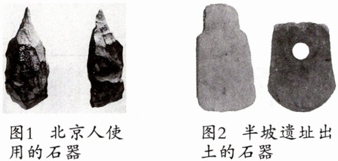 (1)图 1:打制;图 2:磨制。 社会生产力的进步和发展。