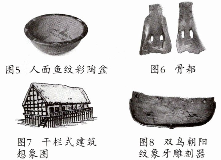 以下是某同学搜集的反映半坡人、河姆渡人生产生活的图片。