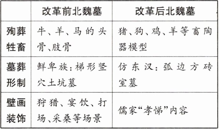 6. 下面是北魏孝文帝改革前后北魏墓葬变化对比表。从表格中可以看出,改革带来的影响是()