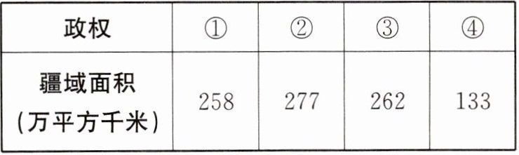 4. “南朝四百八十寺,多少楼台烟雨中。”诗中“南朝”是指420—589年我国南方相继出现的宋、齐、梁、陈四个政权。下表反映了南朝政权的疆域面积情况。据此推断南朝宋是()