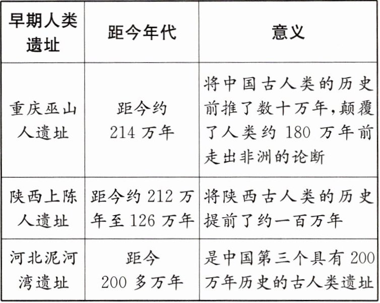 1.小明在学习史前时期中国境内早期人类与