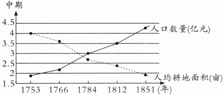 3.(广西南宁期末)下图是清朝中期的人口数量和人均耕地面积对比图。这反映了清朝中期()