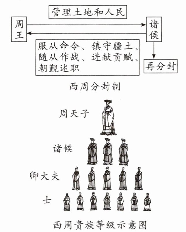 (2)根据材料二并结合所学知识,分别说出西周实行分封制的目的和分封诸侯的依据。(3分)