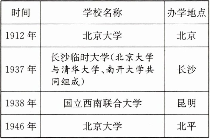 10. 读下表,指出北京大学校名及办学地点变化的原因(